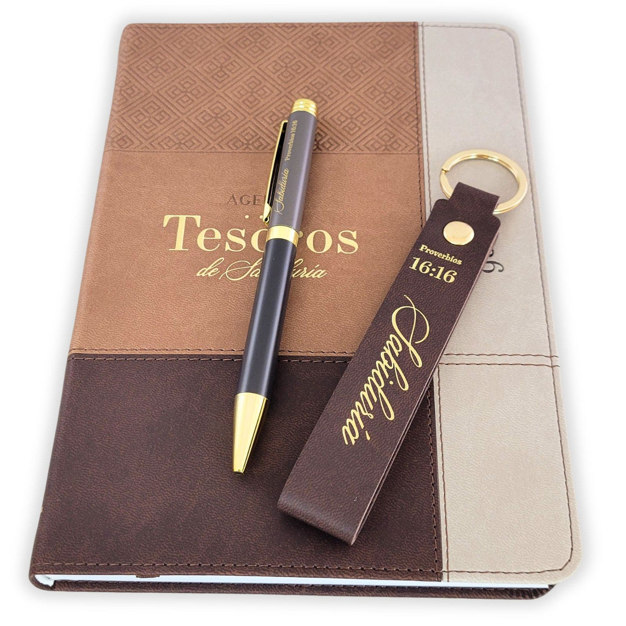 En 2026 vuelve una de las agendas más queridas por el público evangélico en Latinoamérica: La agenda Tesoros clásicos. Y vuelve con un increíble pack que incluye un bolígrafo metálico de gran calidad y un llavero de imitación piel. Todo ello en una caja de lujo. En esta agenda descubrirá cada día a un personaje de la Historia del protestantismo y una de sus frases célebres, para no olvidar nunca aquellos que nos precedieron en nuestra fe y lucharon por cambiar el mundo a través de las Enseñanzas de Cristo.