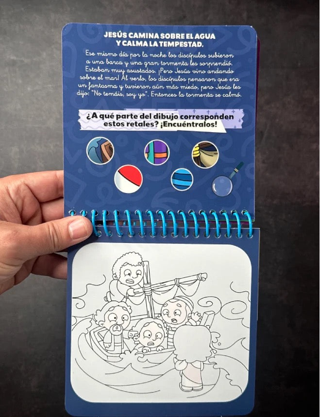 Con este fabuloso libro los niños aprenderán sobre los milagros de Jesús mientras pintan con agua sus páginas.