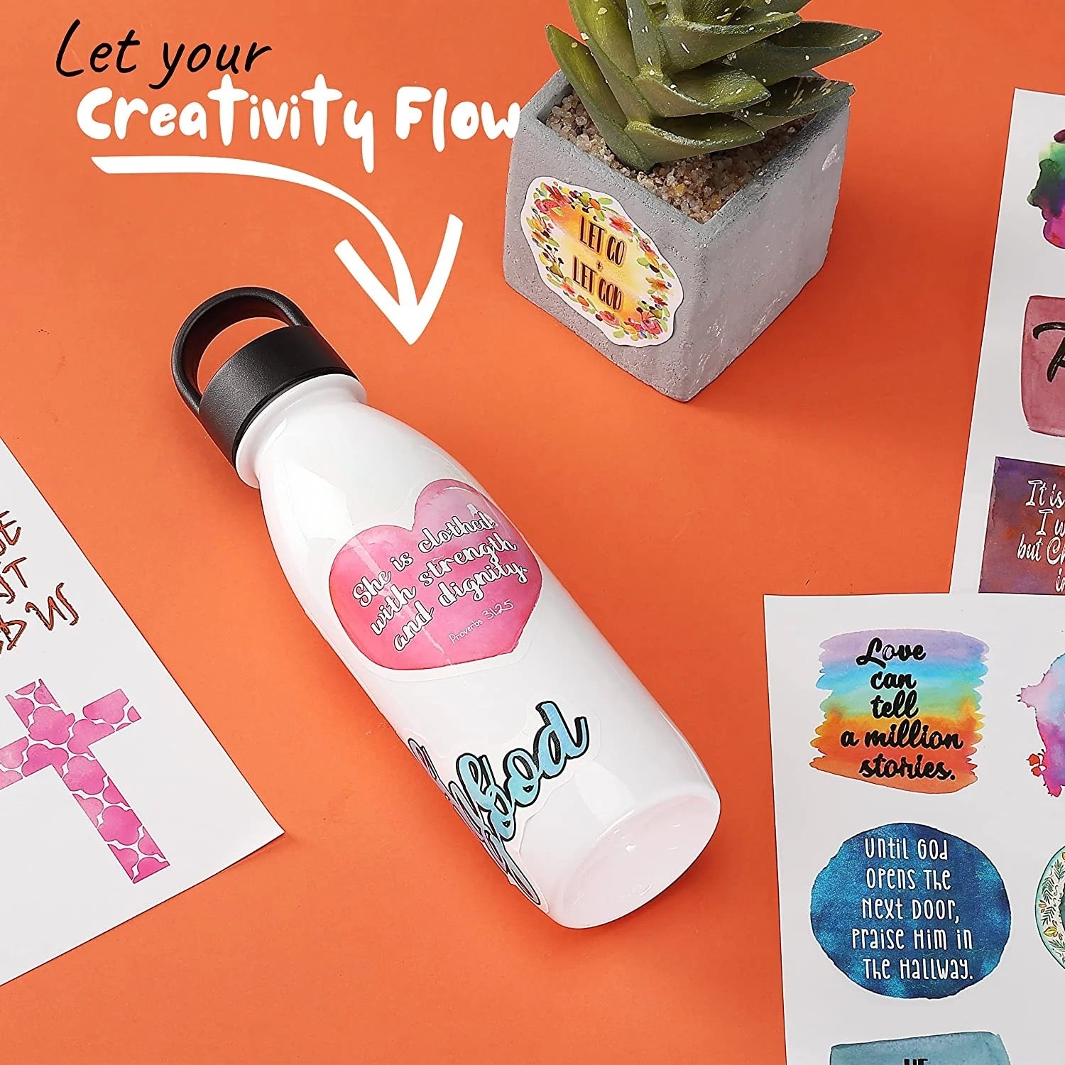 Estas pegatinas bíblicas son ideales para decorar tu laptop, computadora, teclado, hervidor, botella de agua, álbum de recortes, cuaderno, maleta, auto, guitarra ¡y mucho más!