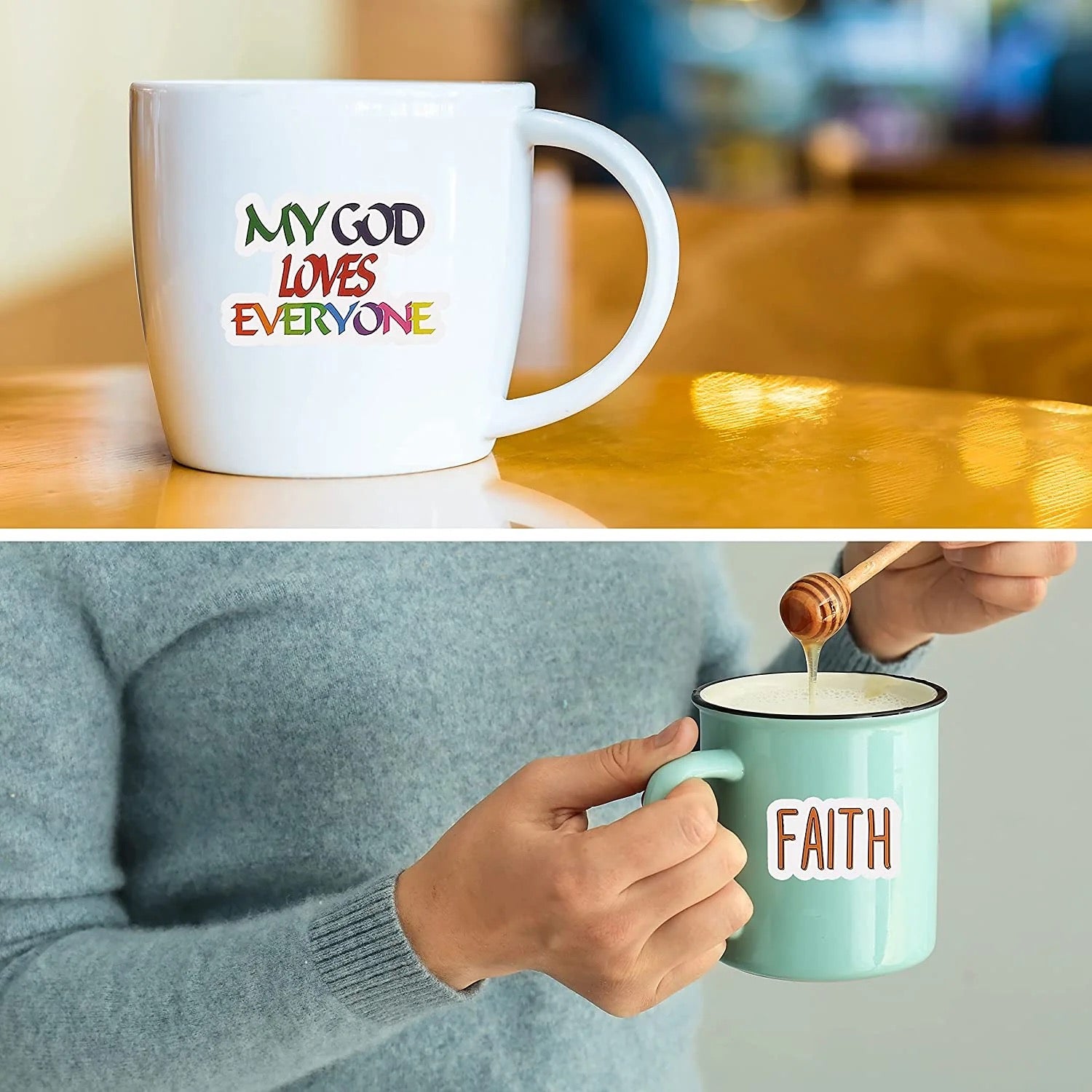 Todas las pegatinas cristianas están hechas de papel de alta calidad con adhesivo en la parte posterior, lo que permite que se adhieran fácilmente a cualquier superficie lisa.