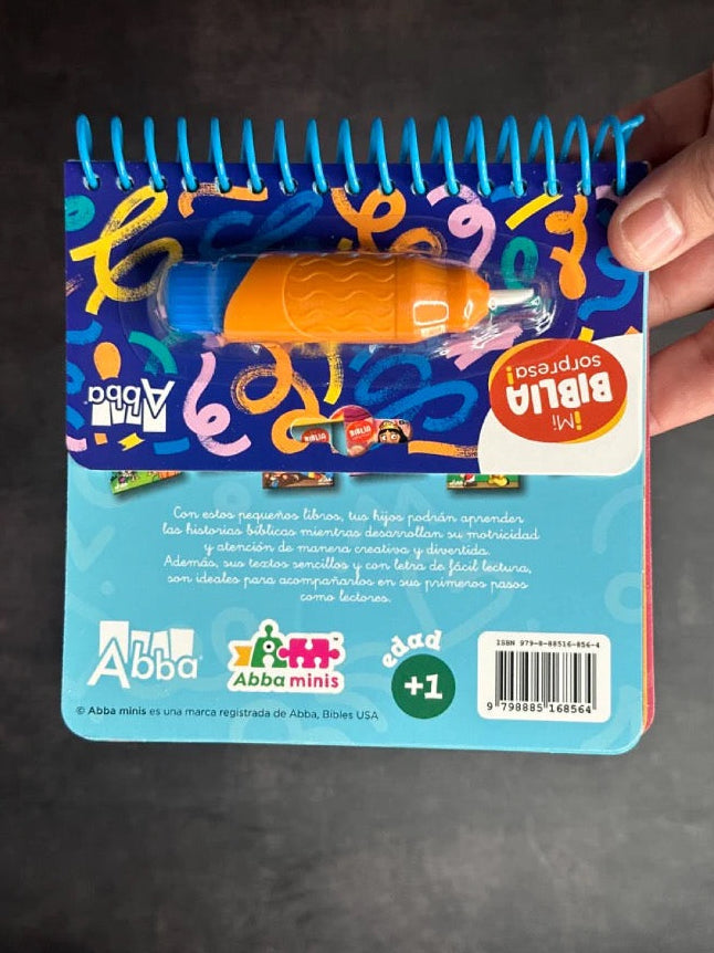 El niño deberá rellenar rotulador (incluido en este libro) de agua y dibujar con él sobre las páginas para colorear. ¡Y sorpresa! ¡Verá como empiezan a aparecer todos los colores! Podrá responder las preguntas sobre los dibujos y buscar los objetos que el libro propone, cuando se seque el agua, empezar a pintar de nuevo. El libro perfecto para aprender sobre la creación de Dios mientras el más pequeño colorea sin fin.