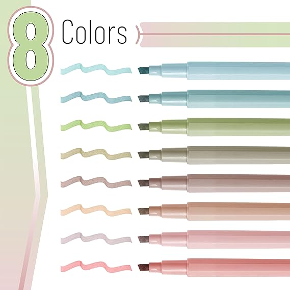 - Haz que tus notas y papeles destaquen con nuestros resaltadores suaves y suaves. Este paquete incluye 8 resaltadores en varios colores. Nuestros resaltadores son perfectos para hacer que tu vida laboral y escolar sea un poco más brillante.