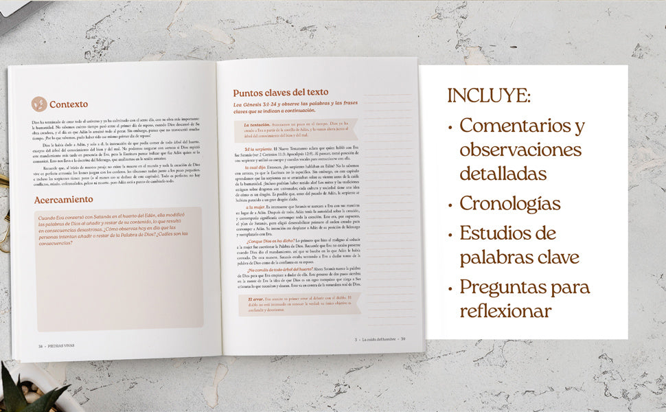 - Preguntas interactivas y profundas con espacio suficiente para escribir tus respuestas y reflexiones.