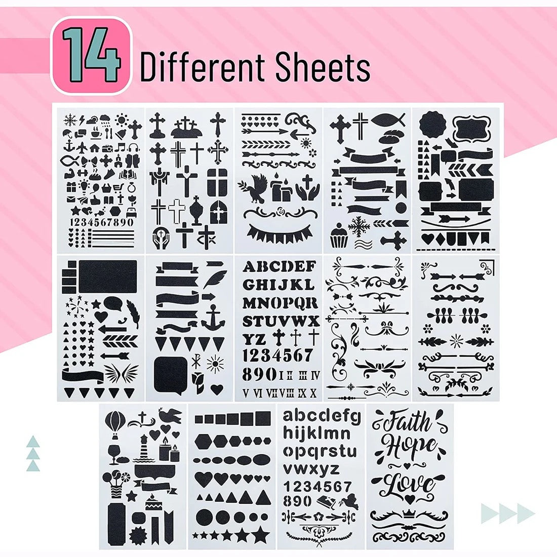 - El paquete incluye 14 plantillas para journaling bíblico con diseños variados.
